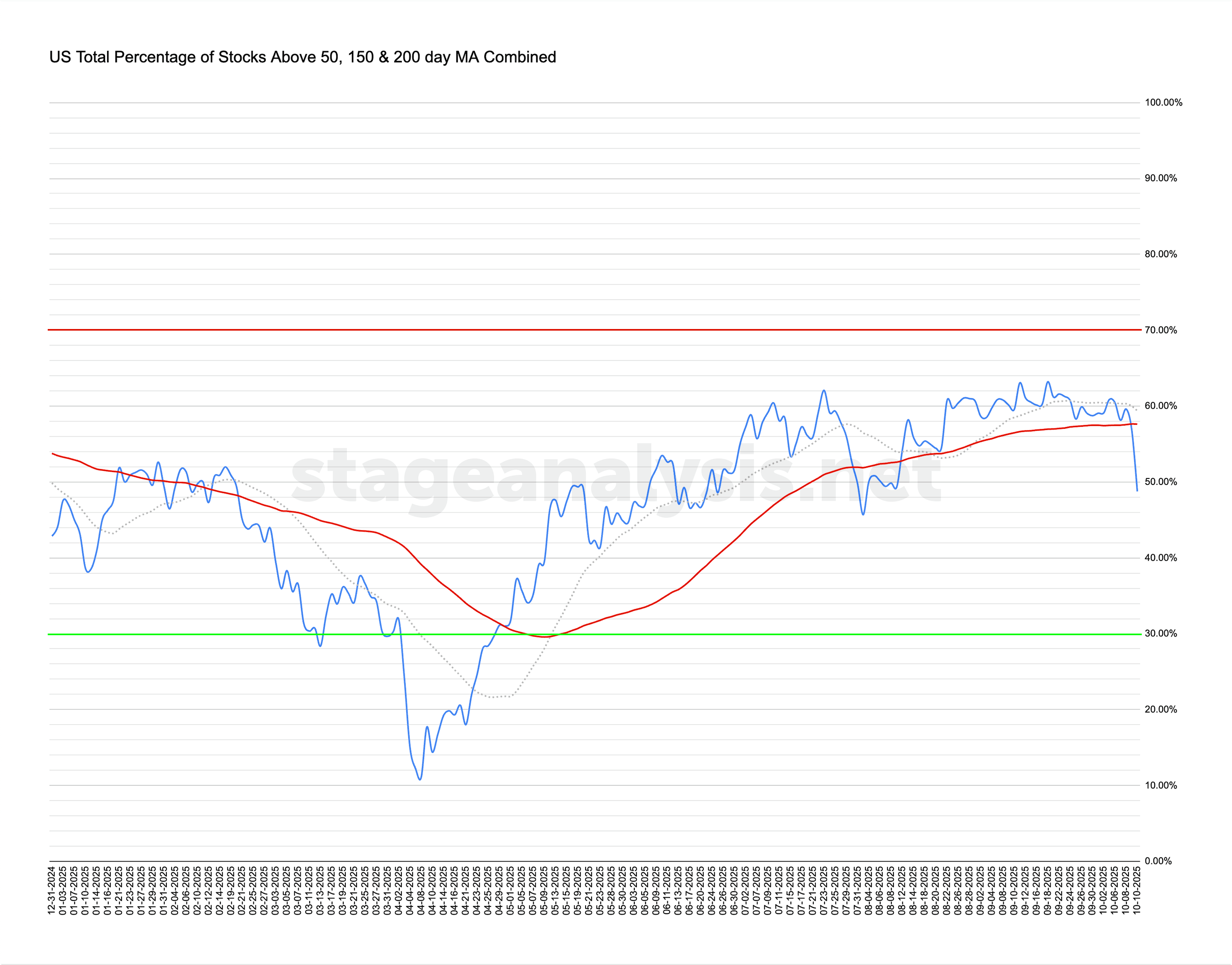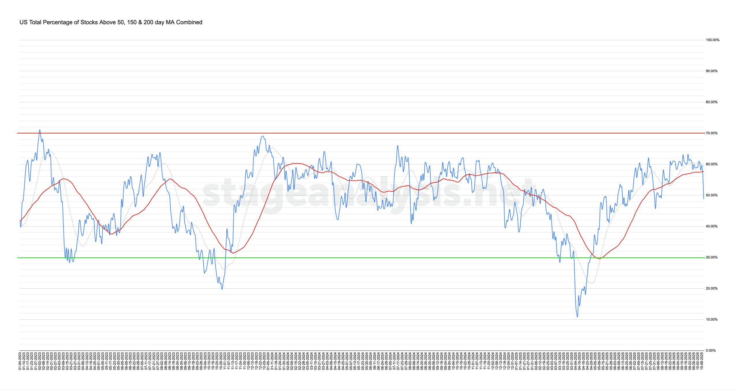 Market Breadth: Percentage of Stocks Above their 50 Day, 150 Day & 200 Day Moving Averages Combined