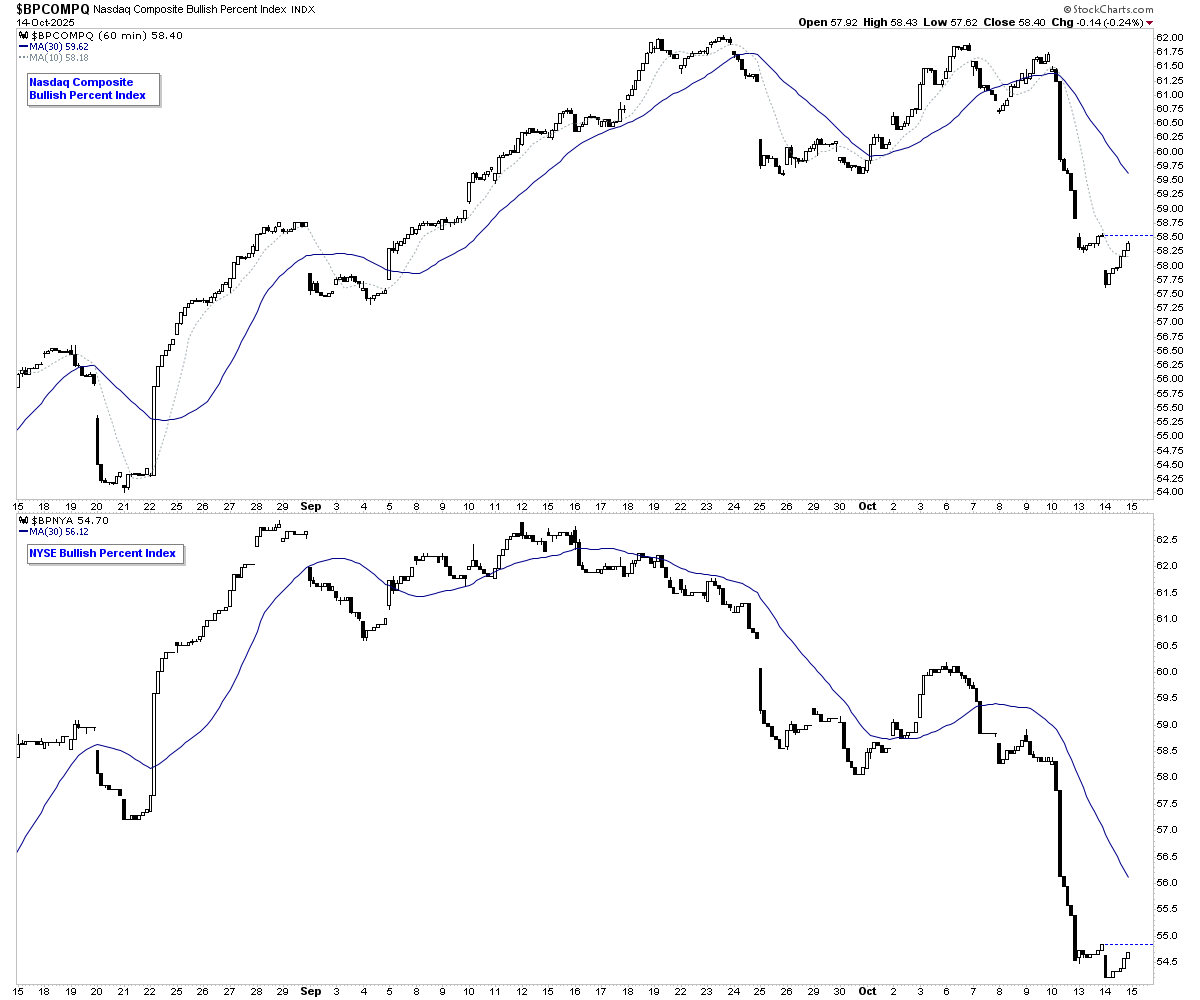 Market Breadth: Bullish Percent Index (Nasdaq Composite & NYSE)