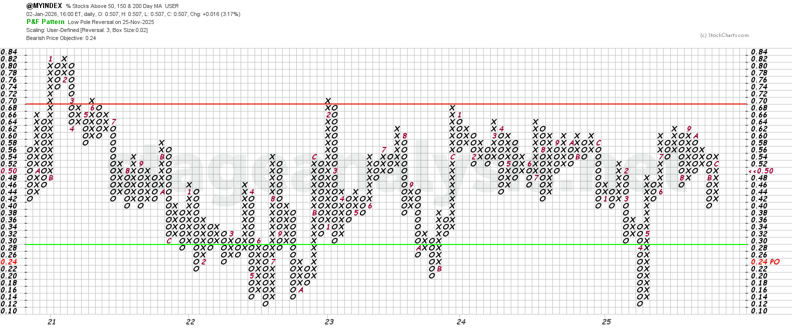 See the Bullish Percent article for more information on the P&F statuses.