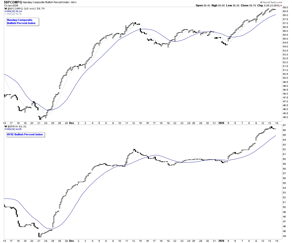 Market Breadth: Bullish Percent Index (NYSE and Nasdaq Composite)