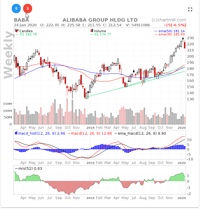 I would love your opinion with BABA. It looks like that it is still on Stage 2 but due to the news of the virus in China, it is going down. From your past experience, would it be still a buy, would you wait a little bit more before you buy or sell it?