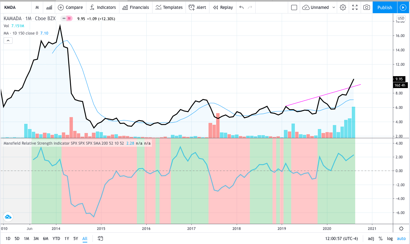 (2020-08-15, 06:54 PM)moneymaker Wrote: Ok thanks isa. What about the KMDA stock? Does it look good to you or not really?