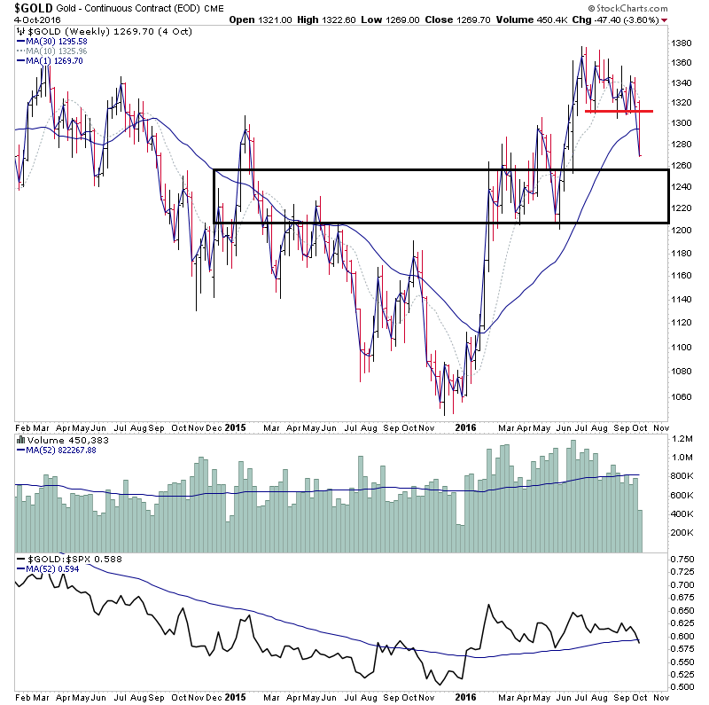 (2016-10-05, 02:55 PM)Smellypunks Wrote: Are gold stocks in a stage 3? It seems that 30w ave is flattening and maybe a neckline forming... If I am right I would expect a bounce off the neckline and then finally a breakdown.