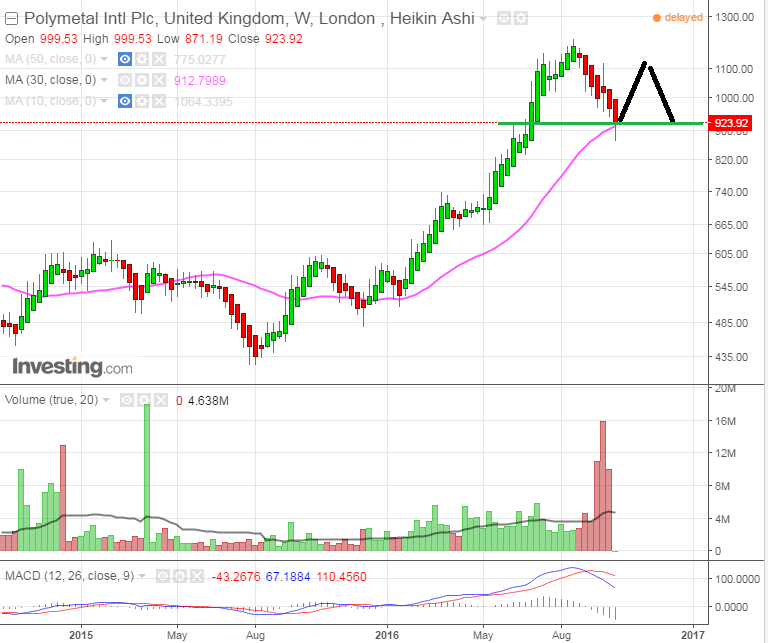 (2016-10-05, 04:43 PM)Smellypunks Wrote: So looking at a gold stock I hold. Should I be looking for something like this. A bounce which helps to produce a neckline (green line).