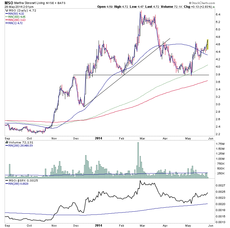 But either way, trend lines are always subjective, so I tend not to use them personally and instead use the 10 week MA and 50 day MA in their place, and watch how stocks react around those levels. So currently for MPET the 10 week MA is at 1.91 and the 50 day MA is at 1.83 and yesterday was the first time the 50 day MA had been touched since the initial Stage 2A breakout began in February.