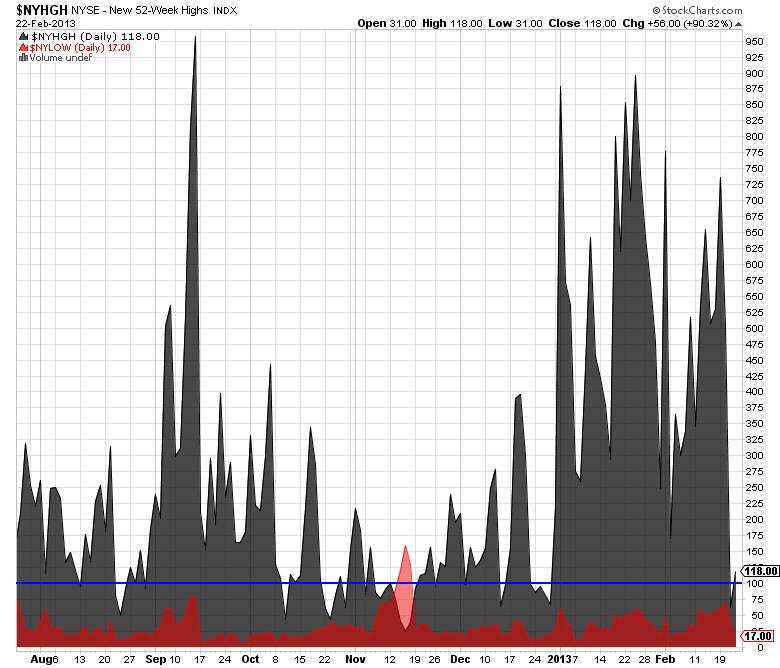 • New Highs dropped back close to crossing below New Lows, but closed the week back above the 100 level.