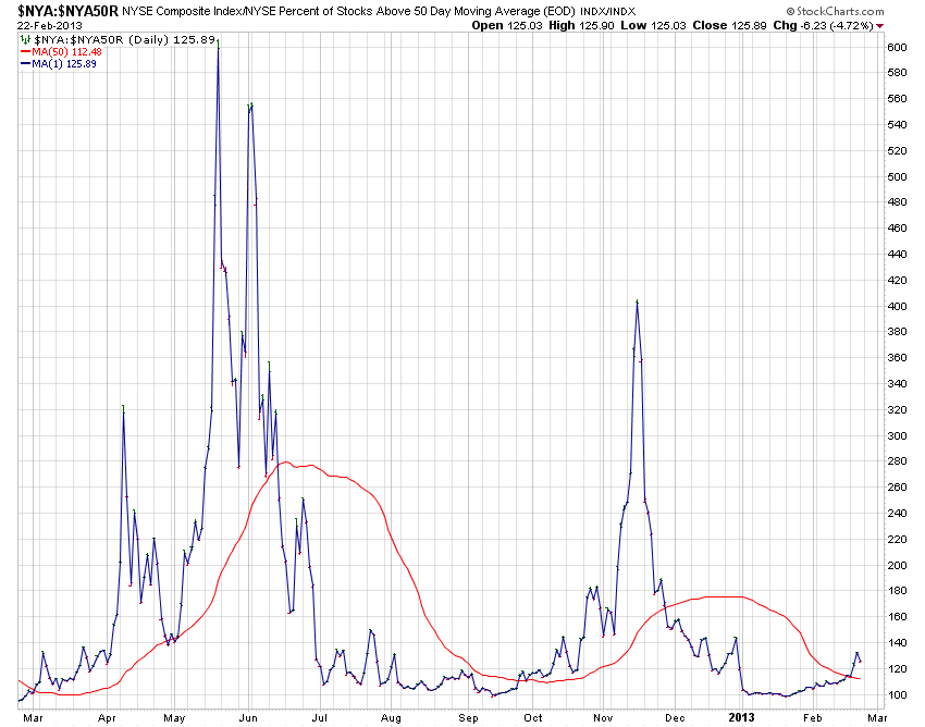 • The short and medium term volatility breadth charts $NYA/$NYA50R and $NYA/$NYA150R both moved back above their 50 day MAs for the first time since November and so change to sell signals imo.