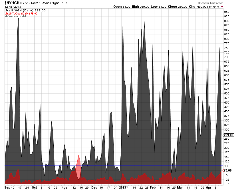 Attached is the New Highs / New Lows charts which remain fairly strong except for a small divergence beginning to form on the 50 MA line.