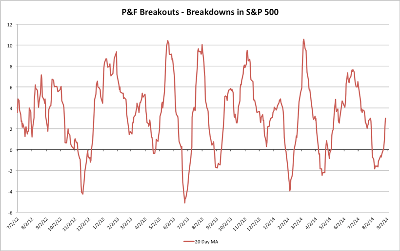 Fate does not always let you fix the tuition fee. She delivers the educational wallop and presents her own bill - Reminiscences of a Stock Operator. S&P 500 Cumulative P&F Breakouts - BreakdownsAttached is the exclusive S&P 500 Cumulative P&F Breakouts - Breakdowns charts.