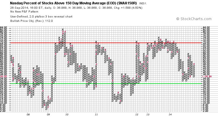 Nasdaq Percentage of Stocks above their 200 Day, 150 Day and 50 Day Moving Averages P&F charts