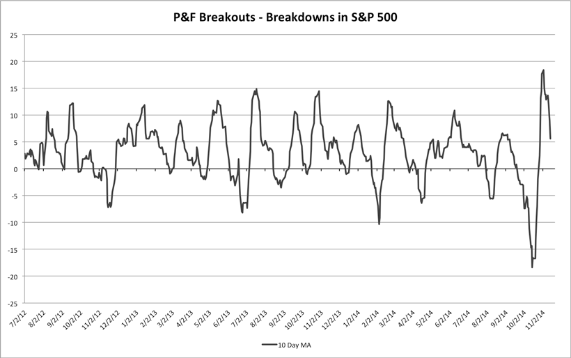 S&P 500 Cumulative P&F Breakouts - Breakdowns