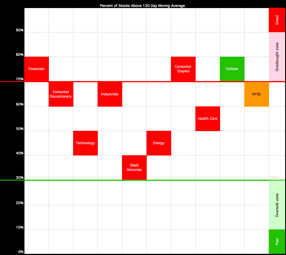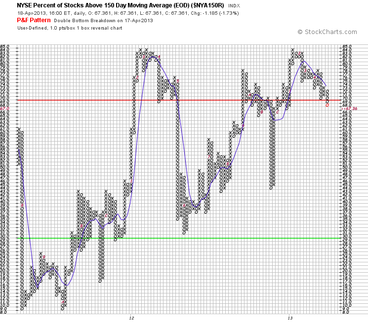 NYSE Percentage of Stocks above their 150 day Moving Averages