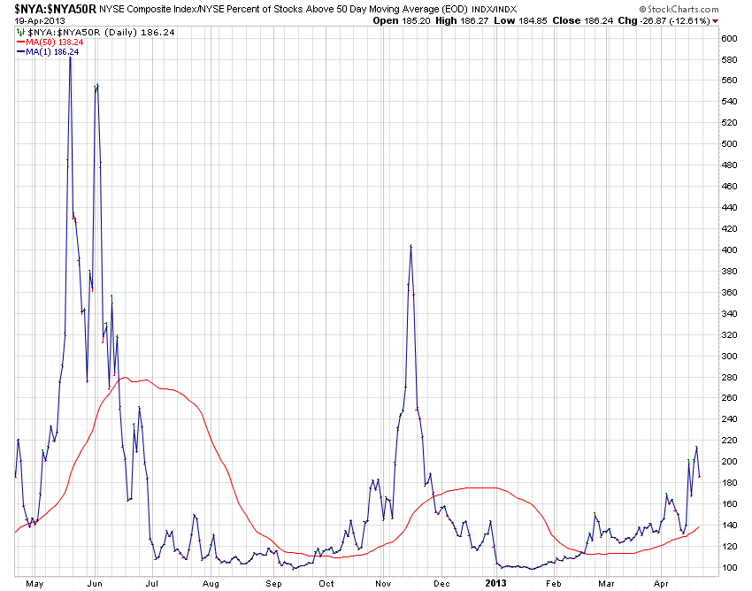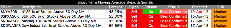 Attached is the NYSE long, medium and short term moving average breadth charts and the NYSE Bullish Percent Index.