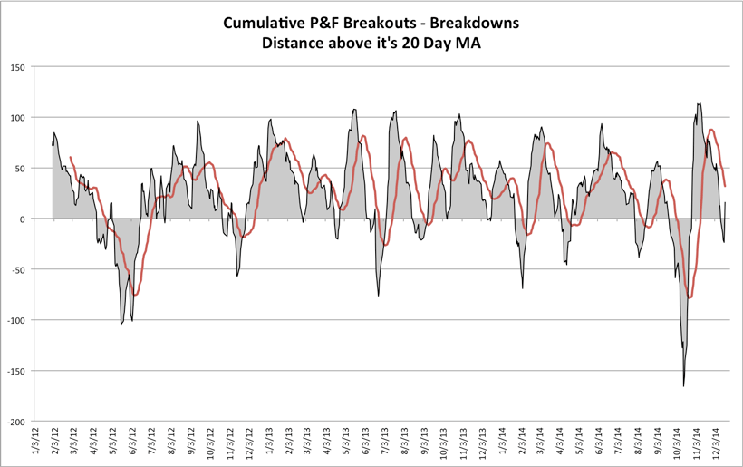 S&P 500 Cumulative P&F Breakouts - Breakdowns