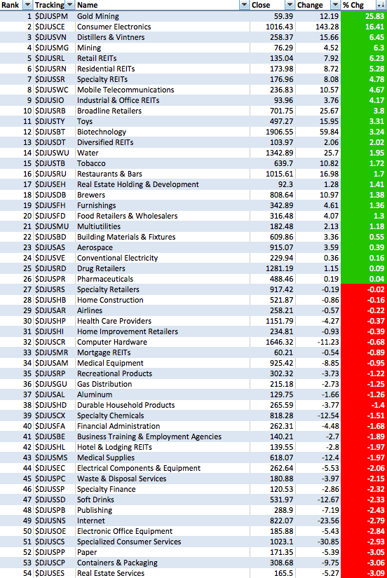 Dow Jones US Sub Sectors Performance