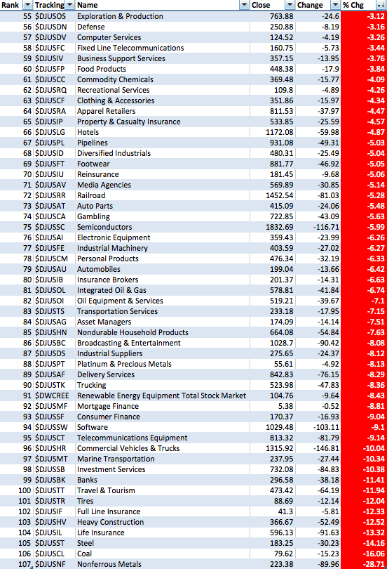Attached is the US Sub Sectors ordered by the weekly and monthly percentage change.