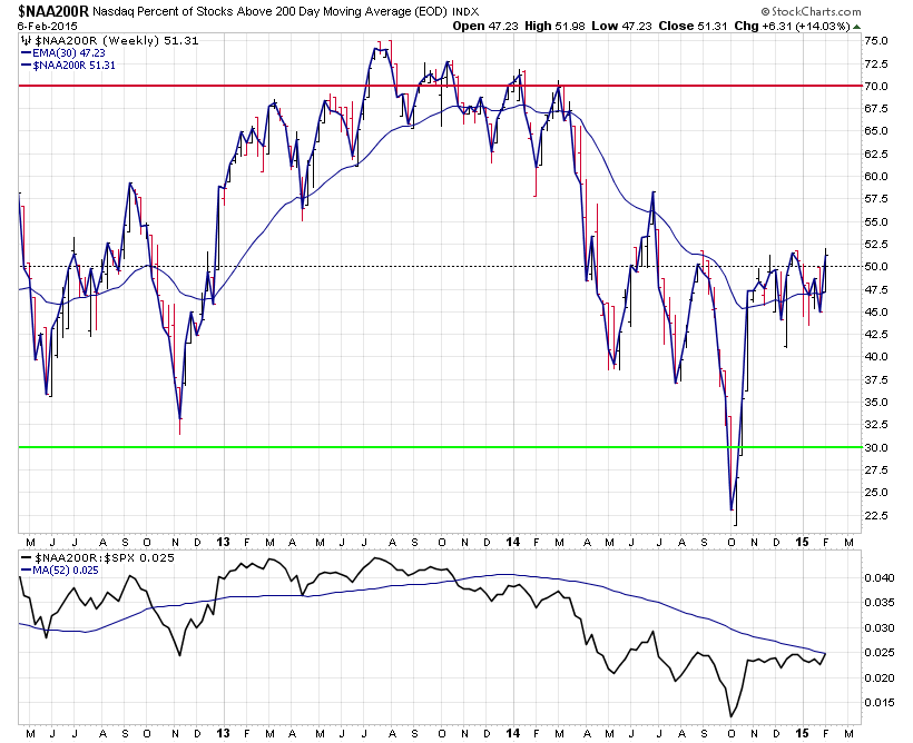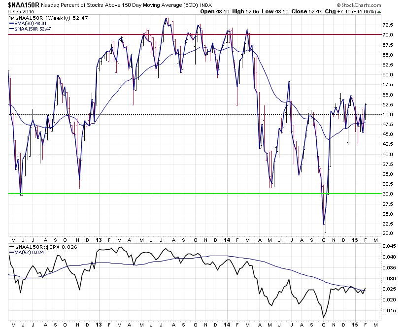 Nasdaq Percentage of Stocks above their 200 Day, 150 Day and 50 Day Moving Averages line charts