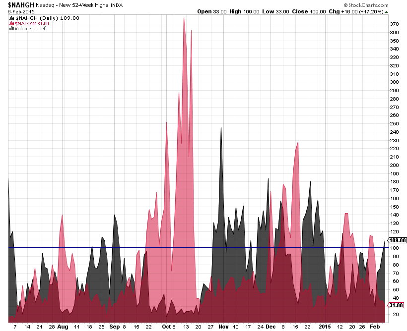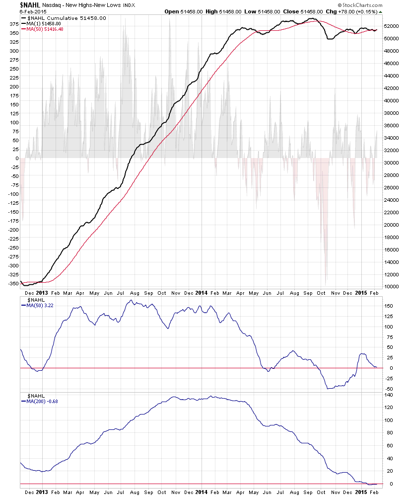 Also, this week I wanted to highlight the combined US New Highs - New Lows cumulative chart as it's the combined NYSE and Nasdaq data, and shows that the broad market is within touching distance of new highs for the first time since the September highs.