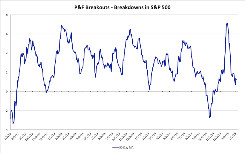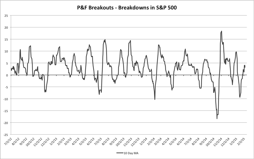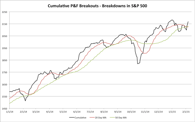 S&P 500 Cumulative P&F Breakouts - Breakdowns