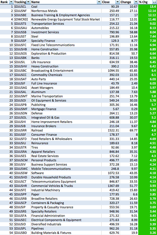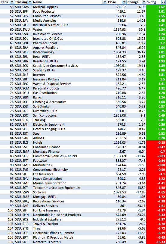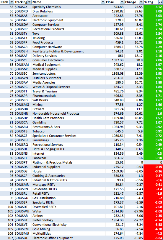 To see the full list sectioned by major sector, with links through to individual stocks in each sector, go to: http://stockcharts.com/freecharts/indust...ECTOR_SPDR