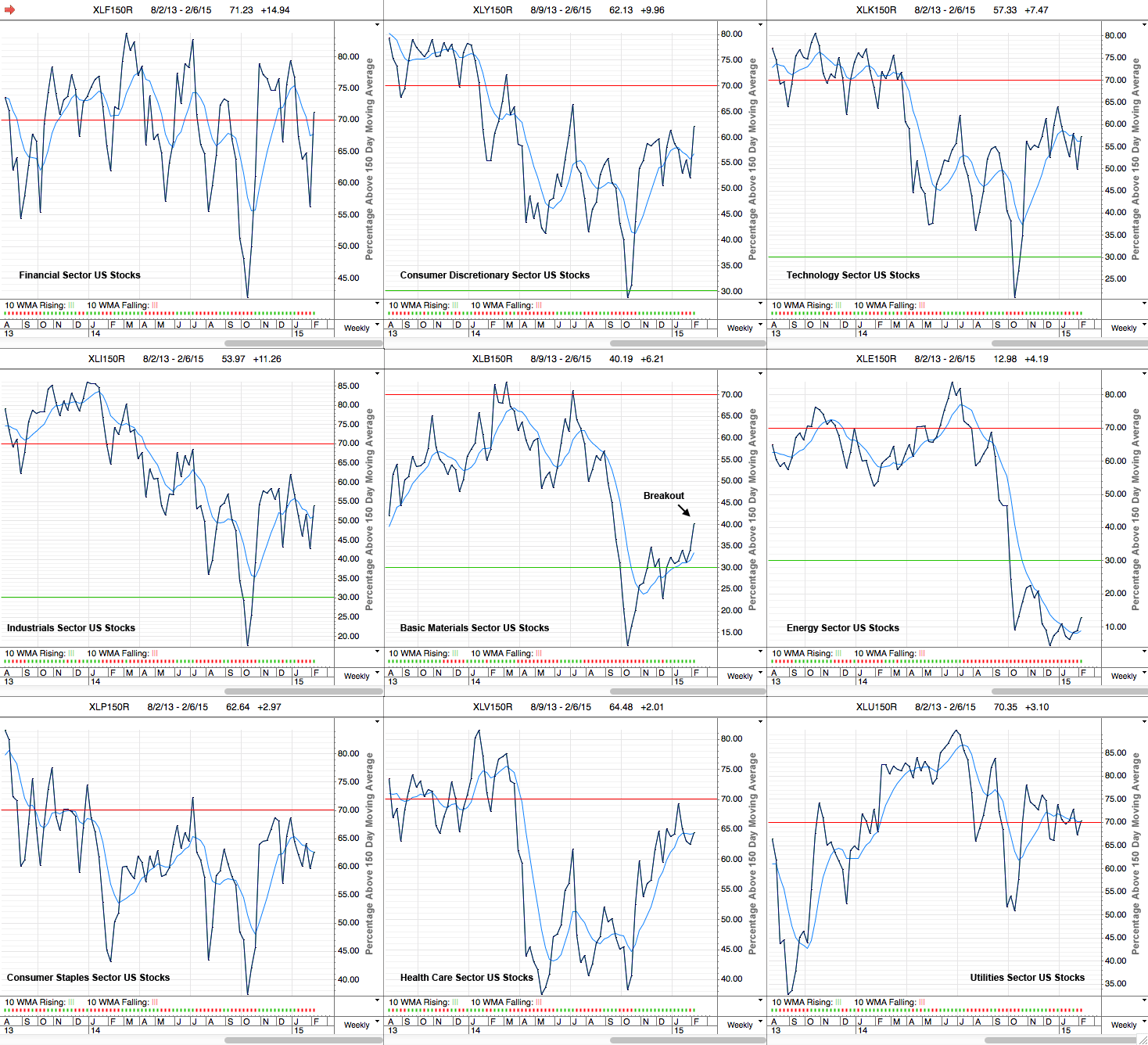 Note: The Basic Materials sector made a strong breakout after consolidating around the key 30% level for a few months, and so the sector has given a buy signal, and moves to Bull Confirmed status for the first time since early in 2014.