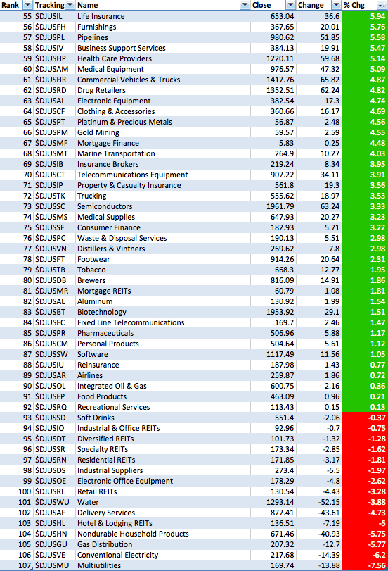Dow Jones US Sub Sectors Performance - US Stocks