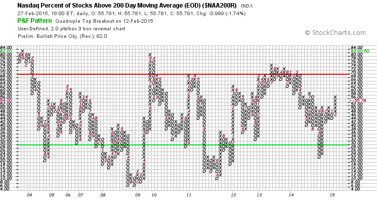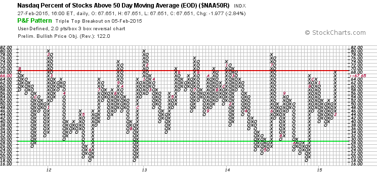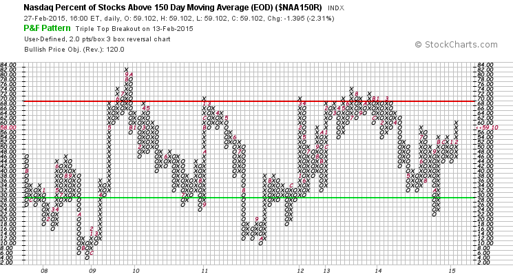 Nasdaq Percentage of Stocks above their 200 Day, 150 Day and 50 Day Moving Averages P&F charts
