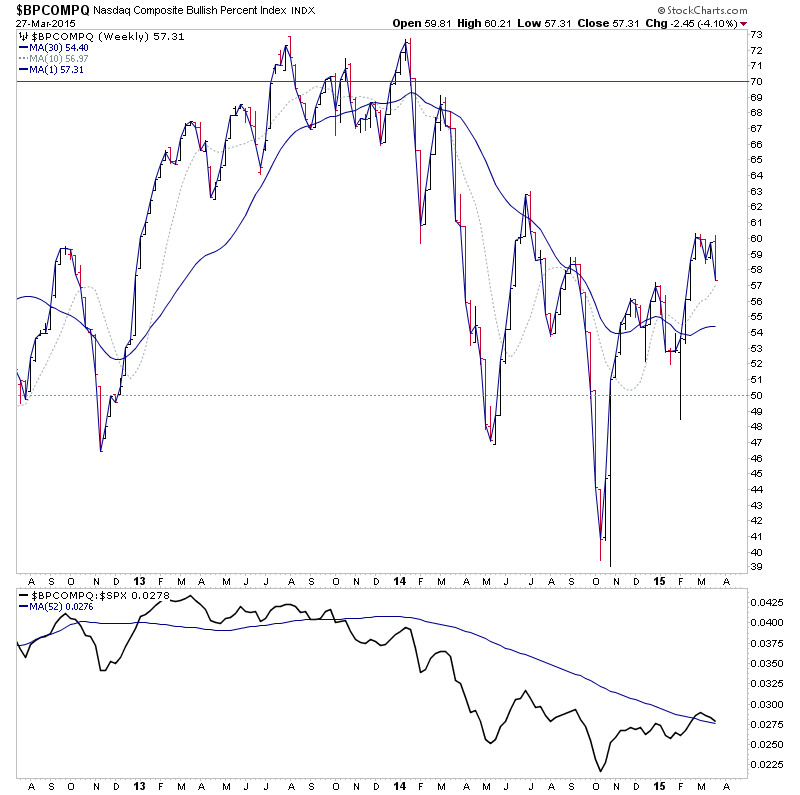 Nasdaq Percentage of Stocks above their 200 Day, 150 Day and 50 Day Moving Averages P&F charts
