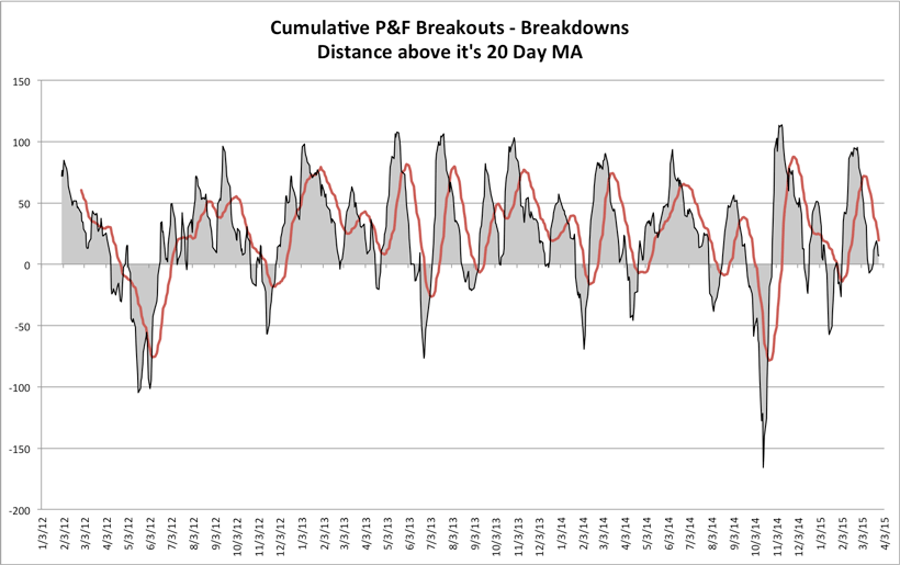 Attached is the exclusive S&P 500 Cumulative P&F Breakouts - Breakdowns charts
