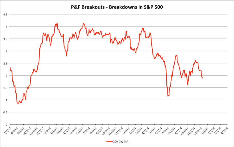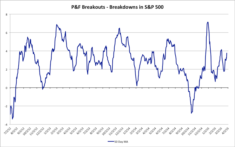 S&P 500 Cumulative P&F Breakouts - Breakdowns
