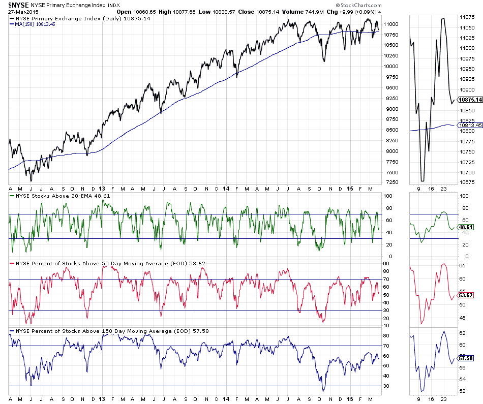 NYSE Percentage of Stocks above their 200 Day, 150 Day and 50 Day Moving Averages line charts