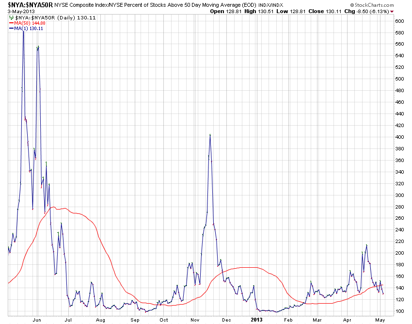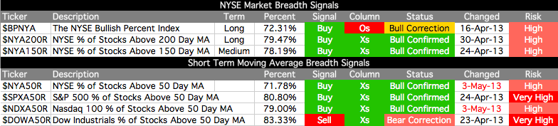Attached is the NYSE long, medium and short term moving average breadth charts and the NYSE Bullish Percent Index.