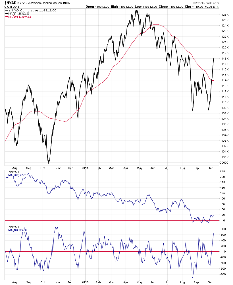 Attached is the updated Advance Decline Breadth Charts, including the cumulative AD line, momentum index, cumulative AD volume line, 10 Day AD oscillator and the McClellan Oscillator and Summation Index.