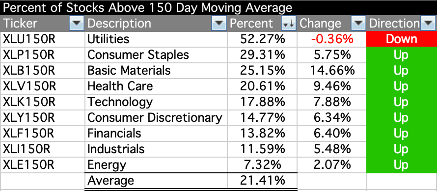 US Sectors - Percent of Stocks Above their 150 Day Moving Average