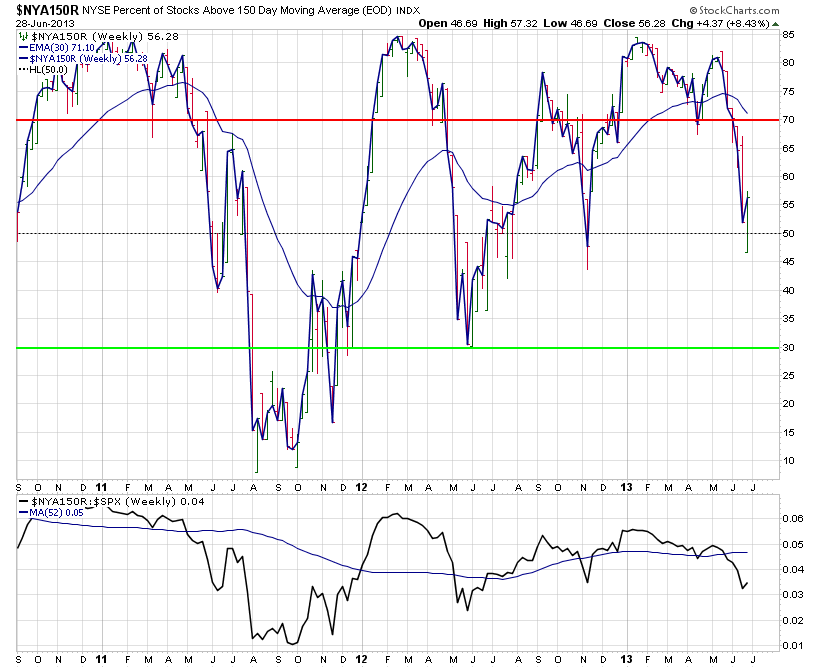NYSE Percentage of Stocks above their 200 Day, 150 Day and 50 Day Moving Averages line charts