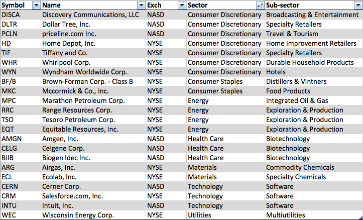 Attached is the the weekly and daily charts of the major sectors and below is the relative performance table in order of strength. Notable changes this week was the cross back below the zero line for Consumer Staples (XLP) and Energy (XLE) also declined two places. Whereas on the stronger side of things Health Care moved up to third in the relative performance rankings.