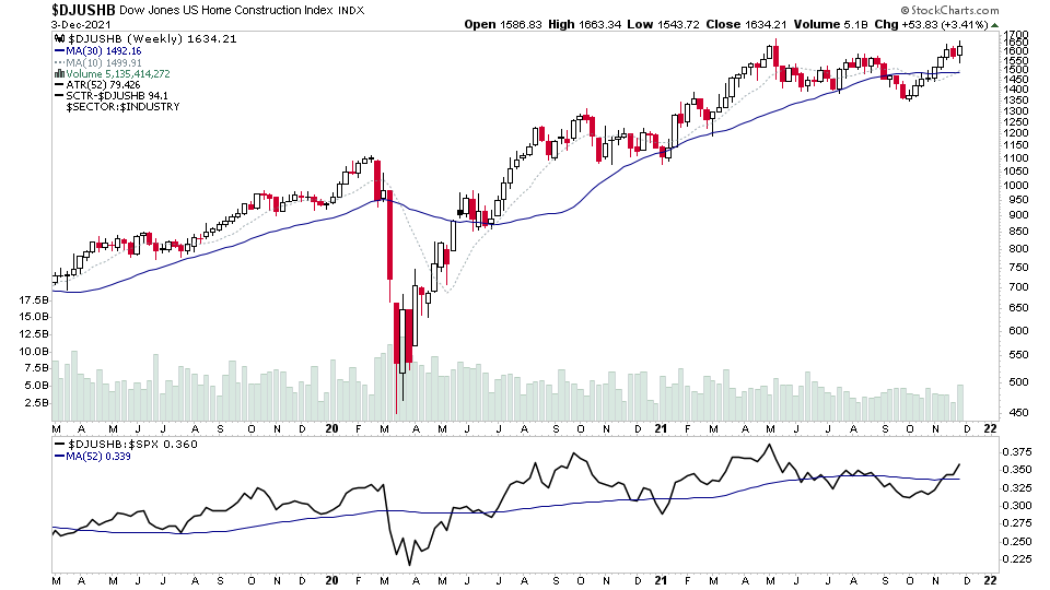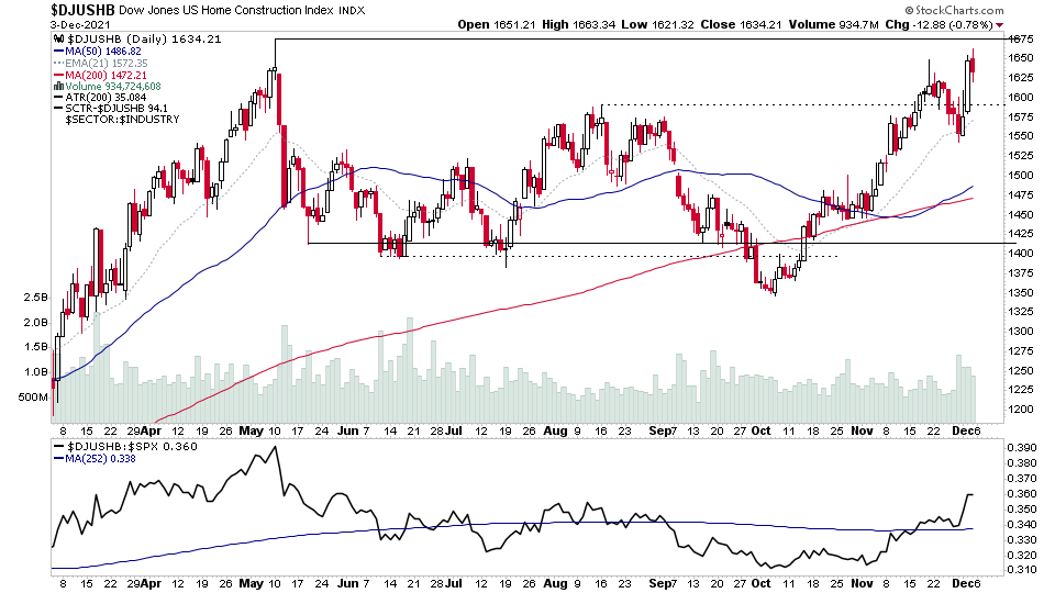Unsurprisingly the strongest groups where defensive areas this week. But of note was Home Construction $DJUSHB which came up in the watchlist stocks on Thursday and moved into the top 10 for overall group RS this week. Potentially in Phase D of the base structure.