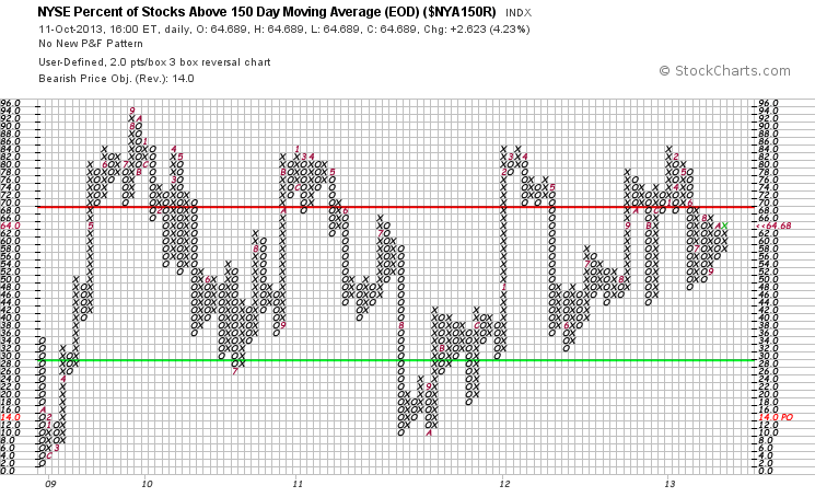 NYSE Percentage of Stocks above their 200 Day, 150 Day and 50 Day Moving Averages P&F charts