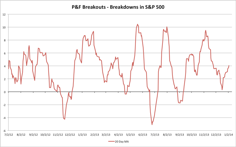S&P 500 Cumulative P&F Breakouts - Breakdowns