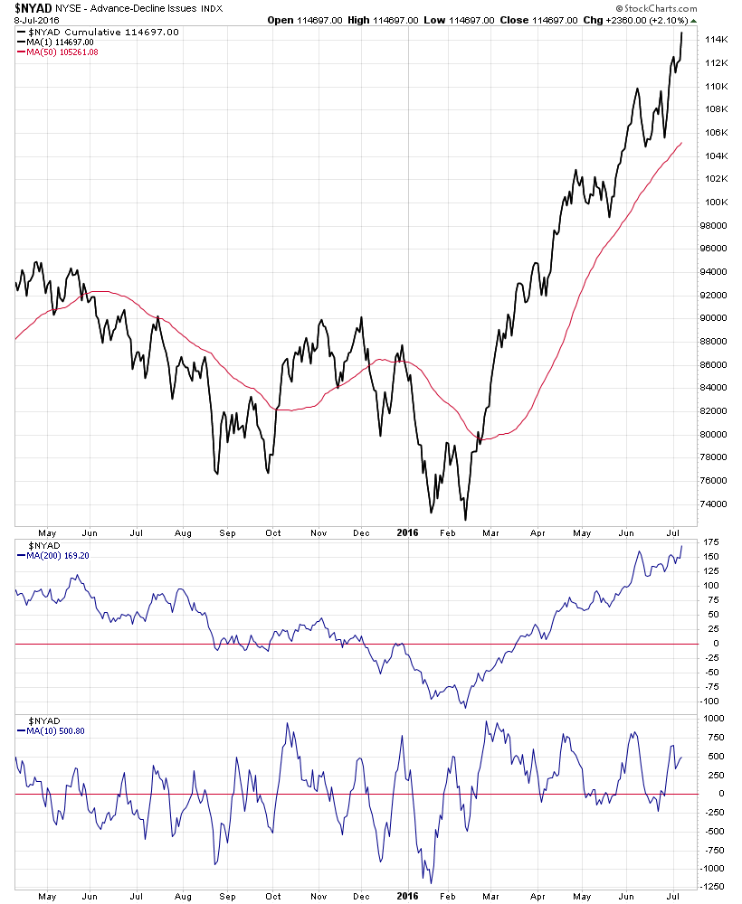 Fate does not always let you fix the tuition fee. She delivers the educational wallop and presents her own bill - Reminiscences of a Stock Operator. NYSE Advance Decline ChartsAttached is the updated Advance Decline Breadth Charts, including the cumulative AD line, momentum index, cumulative AD volume line, 10 Day AD oscillator and the McClellan Oscillator and Summation Index.