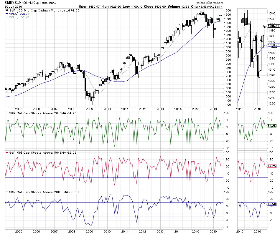 Monthly Charts - US Stock Indexes - NYSE, Nasdaq, S&P 500, Mid Caps and Small CapsAttached is the end of the month charts for the major US markets - all except Nasdaq ended slightly up on the month, after last weeks whipsaw from the Brexit vote.