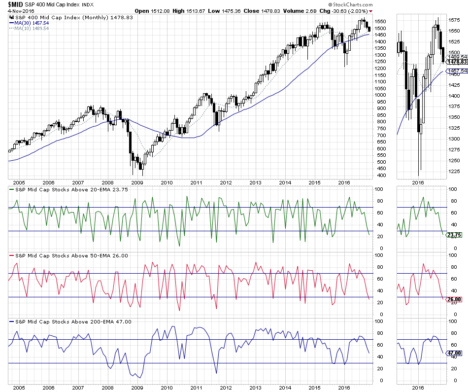 There was also a good uptick elsewhere in the short term moving average breadth too, with strong moves out of the lower zone in the 20 and 50 day MA breadth. So a potential swing low was put in imo. We'll see if it holds following the election result...