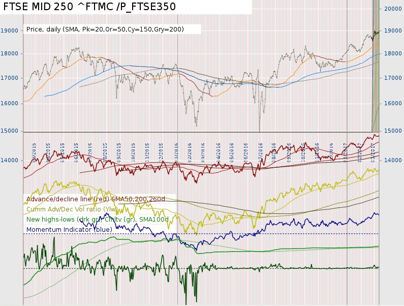 Interestingly the breadth looks stronger if only the FTSE350 is used. Interesting to compare with the US charts.
