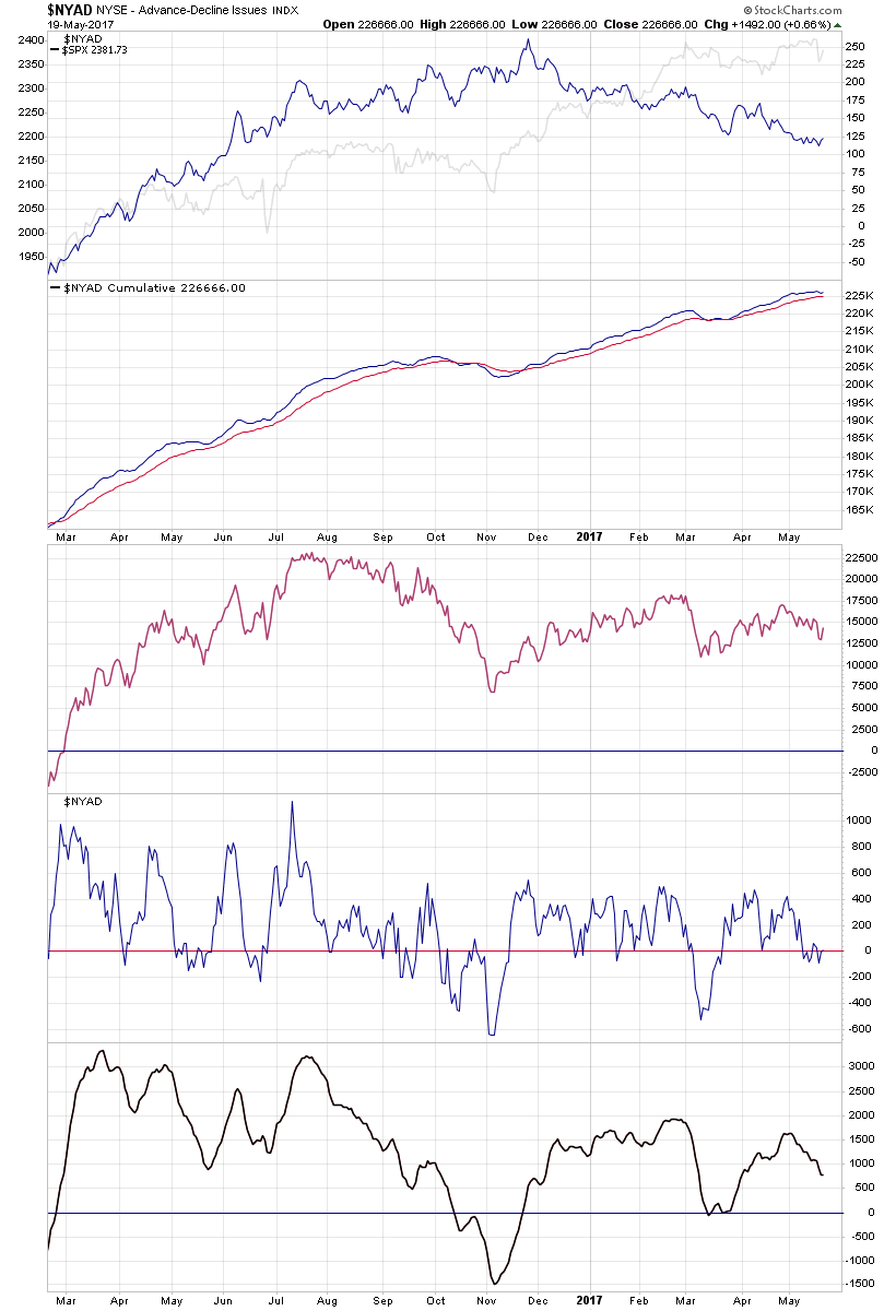NOTE: the breadth continues to gradually weaken overall, although still in the bullish ranges. So nothing serious to note yet from the charts, but the S&P 500, Dow 30 and NYSE markets haven't followed the Nasdaq Composite to fresh continuations. So it is giving me some pause about the market health.