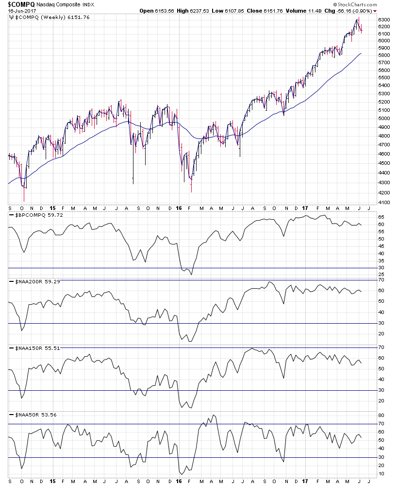(2017-06-17, 08:56 PM)isatrader Wrote: Here's the overview charts of the US Bullish Percent and Moving Average Breadth.