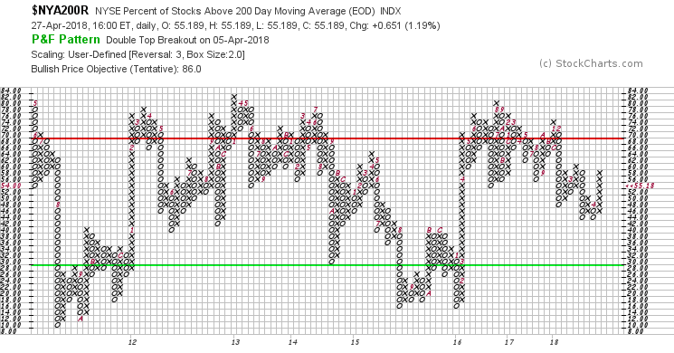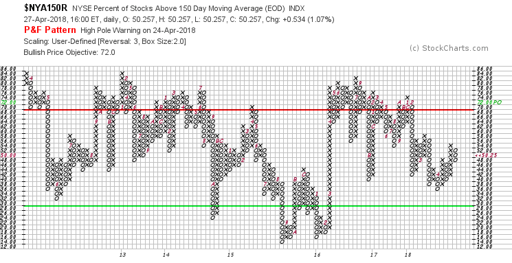 NYSE Percentage of Stocks above their 200 Day, 150 Day and 50 Day Moving Averages P&F charts
