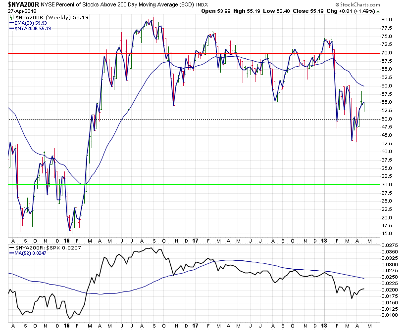 NYSE Percentage of Stocks above their 200 Day, 150 Day and 50 Day Moving Averages line charts