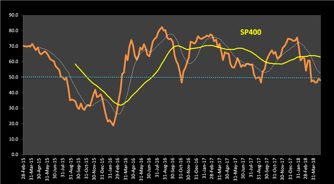 Note: the US markets remain in Stage 3. However, the push below the 30 week MAs was rejected again, and the weekly candles all managed to close above it with only minor negative changes from the previous week. So the markets are forming some shorter term ranges which will help guide on direction depending on which way it breaks from it.