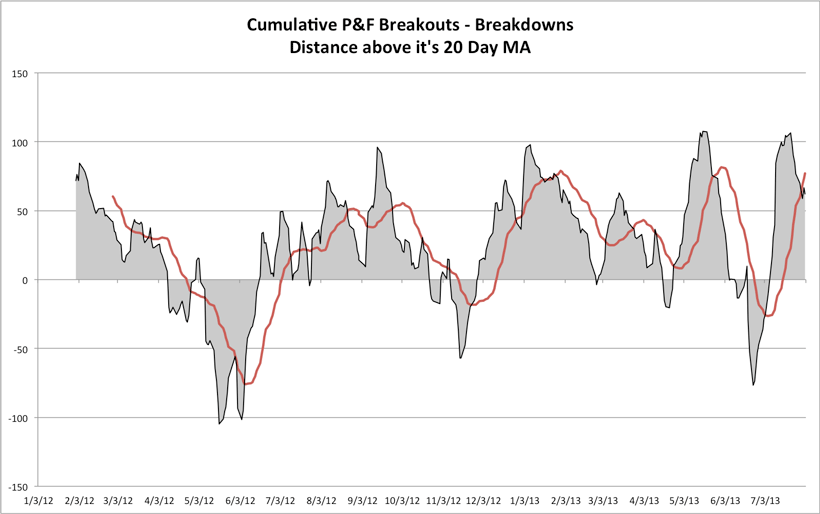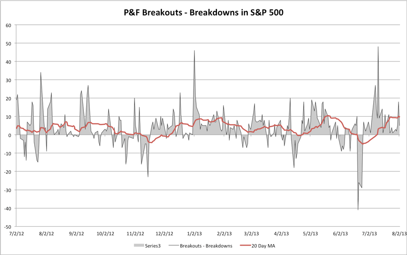 S&P 500 Cumulative P&F Breakouts - Breakdowns