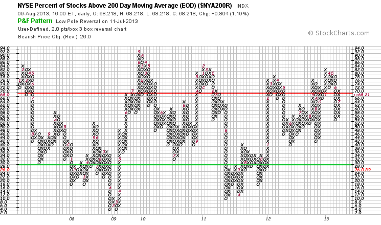 NYSE Percentage of Stocks above their 200 Day, 150 Day and 50 Day Moving Averages P&F charts